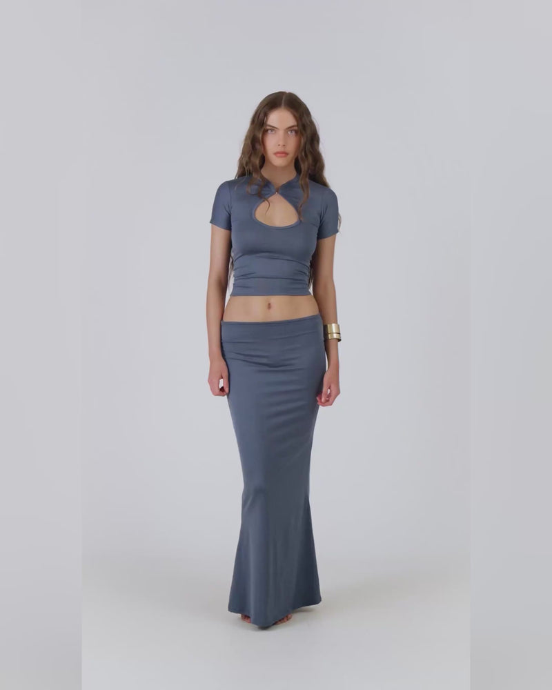 Bamboo DUNE Maxi Skirt In Steel Blue